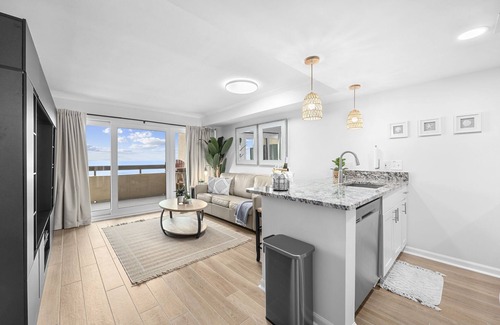 Completely remodeled one bedroom, one bath condo in Sea Pointe. The front door offers smart door technology and a security camera. The building offers elevator access and free parking in the parking garage for guests. Park on the top floor for direct access to this unit and easy access for luggage or groceries. Luggage racks and grocery carts are located next to the elevator on all floors for your convenience. This unit is conveniently located next to the elevator making easy access to all of the amenities a few steps away.