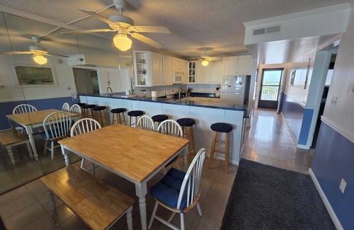 The large OCEANFRONT bedroom offers 2 queen beds, LCD TV with Blu-Ray/DVD player and comes complete with remodeled private bath. The 2nd bedroom offers 2 double beds as well as an LCD TV w DVD player. You can eat-in with a fully stocked kitchen (incl. convection oven) or enjoy dining out at numerous popular restaurants all an easy walk from this property!