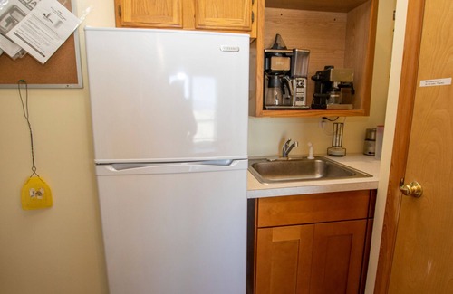 Top Level: Living room with large flat-screen TV/DVD, game area and deck access to a sun deck or the screened porch with bar table. Kitchen with breakfast bar seating 2 and dining area seating 8. Lookout nook with ocean views and a Queen Bedroom with semi-private bathroom (second door from the bathroom to the living areas).