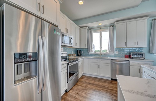 This newly-renovated gem rests at the perfect location in Surf City, offering panoramic beachfront views of the entire island; close access to the most popular restaurants, shops and nightlife; yet quiet and comfortable quarters. This four bedroom/four bathroom escape includes an open-concept living area, ready-for-cooking kitchen with all standard kitchen tools, high speed mesh WiFi, and Roku TVs in each bedroom.