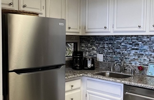 MauiSeaTurtleCondo, unit B201 is on the 2nd floor and accommodates no more than two persons. Condo is not suitable for children under 13 years old. There is an elevator, and stairs. From the moment you enter the condo front door, you can see the ocean. Open the lanai screen door and enjoy the sound of the waves and the off shore sea breeze! There is a TV and a sofa that converts to a bed and a dining table for four. Bathroom was completely remodeled in 2020. Lanai has table and chairs for four persons and a chaise lounger. Fridge has ice maker. Ample utensils and kitchen wares to prepare meals and cocktails.