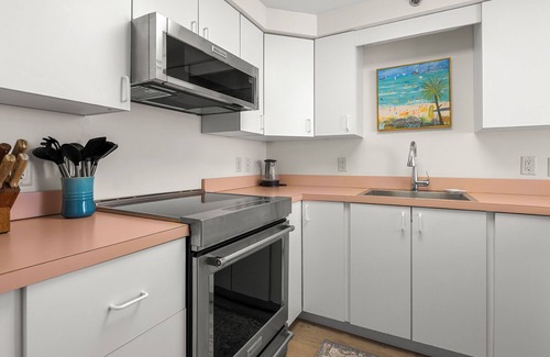 - Fully equipped kitchen featuring an induction range, convection oven, microwave, and air fryer