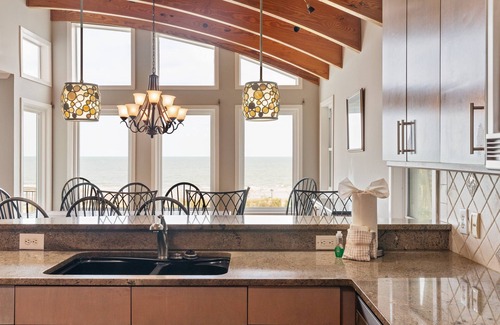 This home features two living areas, perfect for families or different groups getting together to enjoy the football game, the kid's shows, or family card night. Each living area and bedroom features a large flat screen television. The kitchen and dining room offer incredible ocean views. The open space provides the perfect setting for those family dinners.