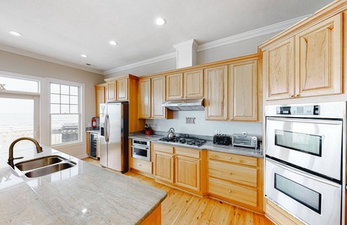 Enjoy granite countertops throughout the home, multiple TVs, DVD players, free WiFi, a game room, and a seasonal fireplace to keep you cozy on chilly coastal evenings in the off-season.