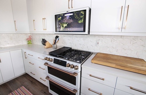 Mid Level: Located on the middle level you will find 4 beautiful bedrooms equipped with smart TVs and AppleTVs. Bedrooms #1 and #2 are each furnished with a Queen bed, a modern Jack-n-Jill bath with a roomy shower, private access from each bedroom to the covered ocean-facing deck, comfortable outdoor furniture, and a hot tub. Bedroom #3 is outfitted with a Queen bed and smart TV. Bedroom #4 is furnished with one Twin bunk bed and a smart TV. Bedrooms #3 and #4 share a sleek Jack-n-Jill bath with an oversized shower. Tucked away on this level, is a state-of-the-art front-load washer and dryer, ironing board, and iron with ample laundry space.