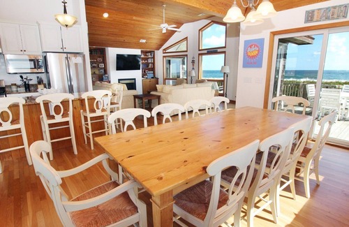 This stunning homes is one of the most spectacular oceanfront properties on the Outer Banks! Your family will love the open floor plan and incredible ocean views from one of the largest oceanfront lots in Duck. The outdoor spaces were designed for summer fun for the whole family. Enjoy an authentic Outer Banks vacation at this one-of-a kind retreat!