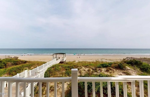 Carolina Dream - Lovely Oceanfront home to host large family or group for a great summer family time (Sleeps 16). Wakeup to crystal clear beautiful view looking at tides and soothing sounds of bird chirps. Enjoy the morning strolls with hot cup of coffee, Rein in your thoughts and calm your inner-self by your own yoga retreat on the beach in your door steps. Relax in jacuzzi tub right by the ocean. Unwind with a glass of wine on your main level deck or private balcony on the bedroom. Entire family can experience a beach resort with this affordable lovely ocean front home on amazing location featuring 2 master suites with great ocean view balcony decks. One's dream of living in nature in their own private beach retreat can be real, yet just 2 miles away from great restaurants with plenty of cuisine options for fine dining. Biking and Nature walking trails are plenty. Dreams can be made real, without robbing a bank or owning a private island.