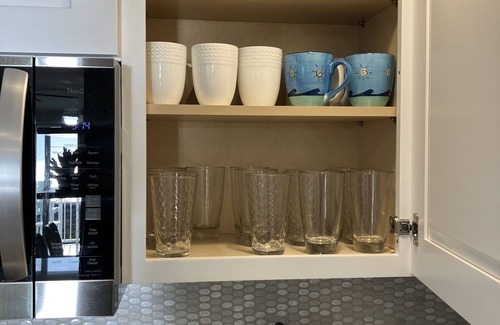 Our condo has a fully stocked kitchen with everything you would need to cook a nice dinner or casual breakfast. Enjoy your meal and drinks on our family-sized country-chic dining table or spacious private balcony. Our Kinetico reverse osmosis kitchen faucet and Aquasana whole house water filtration and softening system provides our guests with clean reverse osmosis drinking water and ice and odorless clear shower water. LG Washer / Dryer and Bosch Dishwasher in unit as well. Please treat our condo as your home away from home and be mindful of our rental policies.