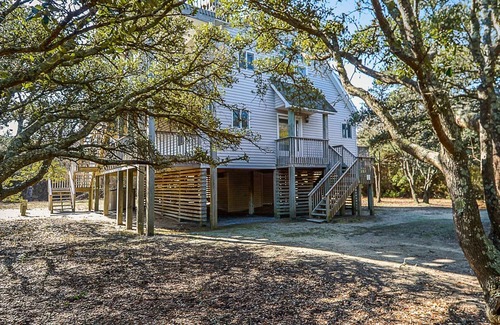 Accessible by 4 x 4 vehicle only! The T-House is tucked into the live oak woods for peace and privacy yet is just 600 feet to the beach! Almost to the Virginia line, 11 miles from the end of the paved road, you will enjoy all that Carova offers including sandy beaches, wild horses, and warm, starry nights.