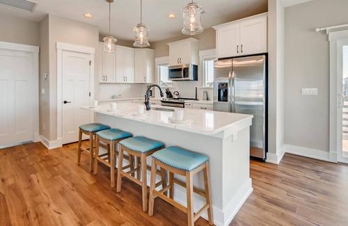 OCEANVIEW Salvo - Tarheel Court - Write your own STARFISH STORY at this modern beach house loaded with amenities. Your story begins as you pull into the covered parking, hop out and run to the pool area to unwind from your trip. You find the refreshing private pool with inset kiddie pool separated by a swim-up ledge. An inviting hot tub is steps away along with gas grill and outdoor seating. Why not throw some food on the grill and relax by the pool for the rest of the day? STARFISH STORY is only 3 lots from the beach which is a quick walk, and the community boardwalk makes it a breeze to get to the sand and waves. Inside the home, you are greeted by a fun game room with many activities to choose from - including pool table, shuffleboard and a TV area with Smart TV, sofas and a coffee table foosball game. The game room wet bar refrigerator is the perfect spot for keeping beach and pool snacks and drinks cool. A king bedroom on this level shares access with the game room to a full bath. Upstairs on the mid-level of the home are four bedrooms, each with Smart TVs. One of the bedrooms is a king master bedroom with private bath, one king master bedroom has a slider to a private deck and double vanity and custom tile shower in its master bath. Another king bedroom and a pyramid bunk bedroom share a hallway bath, and have access to the mid-level deck. The top level king master suite illuminates with ocean views from its private deck and features master bath with double vanity and custom tile shower. All decks at the home are built with Trex deck boards and equipped with upscale outdoor furniture. The great room is decorated with modern coastal flair and offers comfortable seating around a large Smart TV home theater system. The family chef will appreciate the appointments in the kitchen with spacious design and upscale appliances including two dishwashers for quick clean-ups. Gather around the dining table to revel in the day's events as you share your meal together. After dinner, escape to the deck to watch the sun set and the stars emerge in the endless Hatteras sky. There is no better time or place to share the rest of your STARFISH STORY with those you love most.