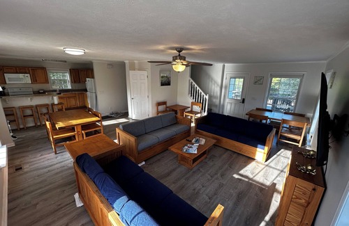 2-full kitchens, one on the bottom floor for ease of outdoor grilling & the main kitchen is on the 2nd floor, both fully stocked with everything you might need.