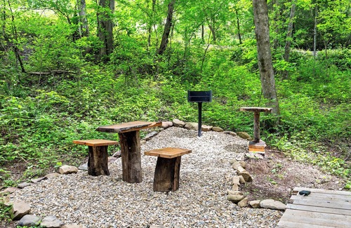 The 3 grilling stations are spread out among the cabins and feature homemade tables and chairs, a grilling table with hooks, lighter fluid, and a grill.