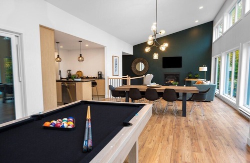 There are 4 bedrooms, each equipped with a queen bed, offer absolute comfort and welcome tranquility after a day of exploration in Domaine Charlevoix. Additionally, you'll find a billiard room, perfect for entertaining evenings with friends and family.