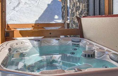 The decor of Stonegate C103 is a harmonious blend of dark and light tones, reminiscent of a serene winter landscape. Step onto the private deck adorned with a bubbling hot tub and BBQ, where you can soak in the snowy scenery.