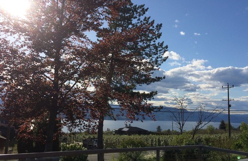 Comfortable three bedroom house with something for everyone. Quiet location 1.5 km above the quaint village of Naramata and its beautiful beaches. Private deck with hot tub, large outdoor sitting and eating area with amazing views of lake Okanagan and your orchard and vineyard neighbors. Beautiful huge new pool area with loungers and umbrellas for your enjoyment. Sip wine and watch the sunset every night from the house, deck, hot tub or pool...the choice is yours. Fenced yard with fire pit area. Private gas BBQ off of fully stocked kitchen including a wine fridge for your wine tour purchases from the 40 wineries located on the Naramata Bench. Wood stove for those cooler winter nights. The perfect spot to relax, unwind, enjoy wine tasting or the locale outdoor activities available. There are 2 kayaks available for use and is located close to the KVR trail perfect for walking or bike riding providing even more spectacular views. SUP rentals can be arranged just down the hill in the village for a different paddle. Apex is just an hour drive away for those who want to ski or snowshoe.