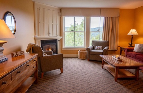 Luxury one bedroom condo with kitchen and living room at Jackson Gore on Okemo Mountain Resort.