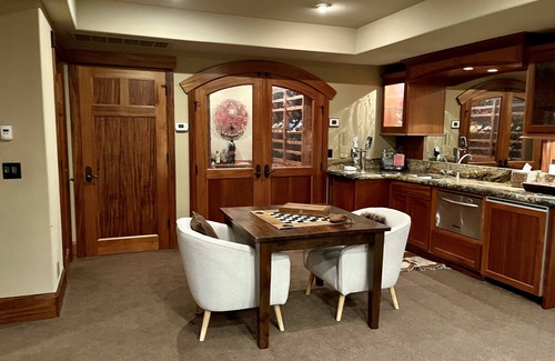 The 1200 sf ft man cave has a bar, kegerator, wine room, custom pool table, legal size shuffleboard, arcade table, game table, Sonos system & a retractable big screen. There is a half bath, 2 queen XL American Leather sofa sleepers (as comfortable As a real bed) & 1 twin sofa sleeper.