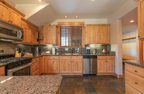 This townhome features floor-to-ceiling windows, vaulted ceilings, a gas fireplace, dual master suites, a washer/dryer, BBQ and two-car garage. Enjoy views of Old Greenwood’s Jack Nicklaus Signature golf course from the sprawling deck.