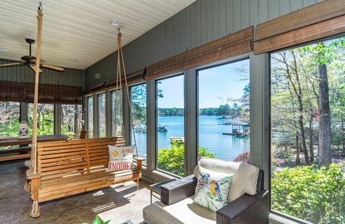 COME ENJOY this BEAUTIFUL LAKE MARTIN RETREAT, featuring FIVE bedrooms, FIVE FULL baths, and large walk out private sandy beach. Enjoy a beautiful view of the sunrise from a spacious screened in porch with TV and double swing. The house offers an abundance of large windows with a stunning view of LAKE MARTIN from the kitchen, family room and downstairs den. The home offers a open floor plan with a large kitchen equipped with modern appliances which include a 5 eye double oven range, ice maker, wine cooler, bar sink and prep island. The main living room and dining area is open, yet cozy offering wonderful views with beautiful scenery from every seat. The two master suites on the main floor have their own full bathroom and large closets with luxury linens and towels provided. One has trundle bed and crib available. Also on main floor is queen sofa bed with gaming/TV area with full bathroom. Downstairs is perfect for kids with sitting area, large screen TV and pool table and outside covered porch. It also consists of king bedroom with a private full bath, queen bedroom and full hall bath and queen bedroom with 2 bunks (full and twin). The sitting area has a trundle bed. Private boat ramp and dock suitable for 2-4 boats, 2 Kayaks, floating tubes and various life vest will be provided on dock. Also gas grill on side porch off of kitchen. We have 7 TVs which include Youtube TV with fast and reliable WIFI. DID I MENTION, CONVENIENT to numerous stores and restaurants! Outside security cameras are on premises.