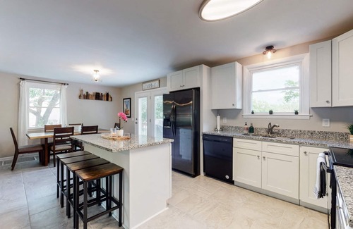 This home features 3 newly furnished bedrooms and 2 ½ baths. The home also has a basement that could be used as an additional bedroom or as a community area for fun, games, music, and relaxation. There is a fully stocked kitchen, and a washer and drier available for your convenience. If you have a little one, we even have a high chair and pack-n-play crib available. The home has plenty of space and amenities for everybody!