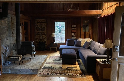 Take a step back in time at this unique and tranquil getaway. Originally built in the late 1800's and nestled in the beautiful mountains of western North Carolina. The Vicar House offers 1bedroom with a trundle day bed, an upstairs loft bedroom with a king size bed, updated bathroom, and full kitchen accommodations. Enjoy your time lounging on the back deck, roasting marshmallows in your firepit, rocking on the front porch, or dipping your toes in our refreshing Watauga River frontage! You are sure to relax in the quite country atmosphere!