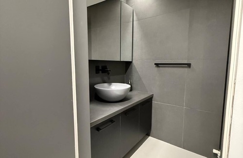 Modern bathroom for your stay. Refresh in the modern bathroom equipped with a modern shower, towels and complimentary toiletries for your convenience.