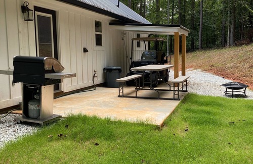 Charming new construction cottage with all the upgrades nestled in the woods with lake access. Enjoy the privacy of the woods and the convenience of a 3 minute walk or 1 minute ride to the private, shared dock. Rental includes access to one covered boat slip, with electricity, on new dock with swim up bench. It is located in a bay that is perfect for fishing, swimming, kayaking and paddle boarding. Rental also includes access to an indoor bathroom just off the dock for convenience. Neighborhood roads are privately maintained and great for walks or golf cart rides to get closer to nature. Tugaloo State Park is less than 2 miles from our property and has numerous trails for serious hikers. Kayaks, paddle boards and a golf cart provided by owner. Pontoon boats available to rent at nearby marina.