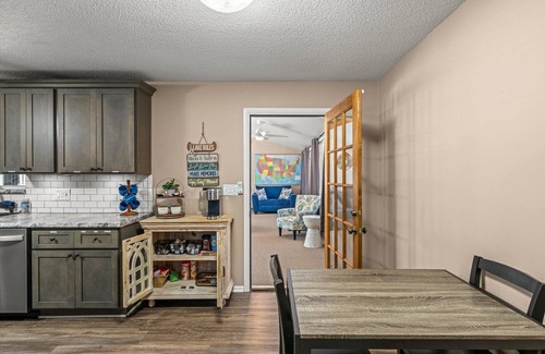 This Basement Ranch has 3 Bedrooms and 2 Full Baths, the Master Bedroom and other 2 Bedrooms have queen beds. There is also a living room, Dining Room-Office, Kitchen, and a Large Family room that has a queen sleeper and 2 sleeper (twin size) chairs that fold out into beds. The Kitchen is well equipped with cookware, mixer, electric hot water kettle, cookie sheets, pyrex dishes, toaster and of course mugs, cups, plates, bowls and utensils. Additionally, we have a Keurig coffee bar with complementary fixings. We strive to ensure you to have everything you would need to fix any meal.