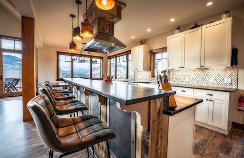 Attention to detail defines this premier choice for discerning travelers. Enjoy easy trail access to 10 Peaks, Gothic, Deer Creek, 401 and more… whether skiing, mountain biking or hiking, explore directly from door to trail. This 5000 square-foot home features in-floor gas fired radiant heat throughout including in our large garage, 6 parking spots, 2 kitchens, 6 bedrooms (5 kings & one bunkroom), 5 1/2 baths, 2 living areas, and a home office complete with treadmill desk. Epic views adorn every room. The entrance leads to a visually dramatic living space with flowing sun-filled interiors and in-your-face views of Gothic & Belview. The vast main living area is open concept & a great place for the whole family to gather. You can choose to cook in or inquire about hiring a private chef in our well-stocked kitchen w/ soapstone island, drop in Wolf induction cooktop & Thermador double wall ovens. The expansive dining table seats up to 14 & offers panoramic views of the East River Valley & Mountain Range. Additional dining seating at island & downstairs. A large mudroom off the kitchen provides ample storage space. Also off the kitchen is a laundry room with double stacked Electrolux washers & dryers. The primary suite, also located on the main level features a king bed & luxurious bathroom equipped with a 47 x 80-inch step-in steam shower & a deluxe 70-inch soaking tub thoughtfully placed in front of a dual window overlooking the majestic mountain scenery. There are access points around the house for high-speed internet. On the top level 2 king bedrooms share a full bathroom with a walk-in glass shower. The lower level offers additional living space, ideal for extended families, with a full kitchen, dining area, living area, & 3 more bedrooms (2 kings & 1 bunkroom -each with own full bath) & washer/dryer. Outside enjoy an expansive flagstone patio with an oversized hot tub, seasonal trampoline, gas grill, & large fire pit. Entertainment options abound with high-definition flat-panel televisions, Sonos speakers, outdoor foosball table, folding ping pong table, dartboard, & board games. While a vehicle is recommended for getting around, Mount CB offers a free on-demand shuttle service that will pick you up & transport you anywhere in Mount Crested Butte. We provide 100% cotton bed & bath linens, paper towels, toilet paper, botanical body wash, botanical shampoo & conditioner, hand lotion, facial tissue, hand soap, laundry soap, liquid dish soap, dishwasher pods, and trash bags to ensure a comfortable stay. Only the number of guests listed in the reservation are permitted to stay at the property. Dogs are the only pets allowed, with a maximum of one dog. Any changes to guest count or pet inclusion must be made through VRBO and may incur additional fees. Changes to the number of nights after the cancellation period are subject to the terms of the cancellation policy. For groups exceeding 12 guests (excluding children under 24 months) or for those bringing dog, an additional fee of $50 per night, per person or dog applies when specified at the time of booking. This fee is automatically charged through Airbnb. For Emergency Contact/Local Representative contact information, go to the Town of Mt Crested Butte website and navigate to the Short-Term Rental page.