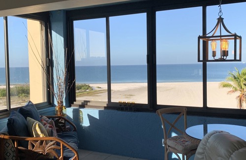 Very comfortable two-bedroom / two-bathroom classic 1,250 square foot beachfront condominium. Sixth floor with million-dollar views of the Gulf & spectacular sunsets. The condo is located on the coveted "south side" of Sandarac Building A.