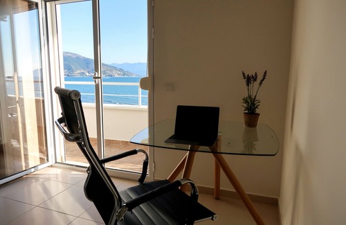 Closest apartment to the beach in Vlorë you will ever find! Perfect for families and couples. With stunning panoramic views from the 2 balconies (4th floor) and all the luxuries like AC, fully equipped kitchen, Smart TV, etc. Most apartments in Vlorë are separated from the sea by a busy, dangerous and load road. Only a handful of places like this one have the luxury to have a road behind the building instead of in the front. What makes this place superior!