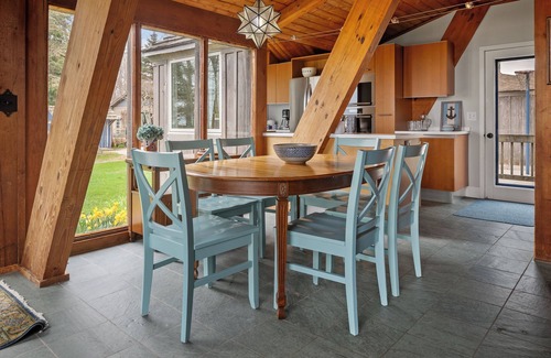 The home's four bedrooms make it spacious enough to accommodate larger groups. Multiple living and family room hangout spaces allow for watching movies, playing pool, board games, reading, or simply enjoying the view of Lake Michigan.