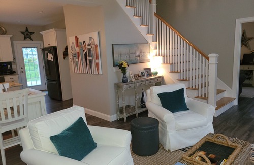 This cottage is a newly constructed, beautiful 2 bedroom 2 bathroom home located in Cape Arundel Cottage Preserve, a 300-acre gated community 10 minutes away from the coastal town of Kennebunkport as well as many beaches. The cottage is complete with a stunning kitchen, comfortable living room with gas fireplace, first floor bedroom(queen) as well as a fully equipped home office. The second floor consists of a large master bedroom (king) and bath as well as a loft area. Our condo association only allows 5 people per rental. Sorry no pets or smoking allowed. The outdoor patio in the rear is equipped with a dining table that seats 6 as well as a gas grill. There is a washer/dryer unit located on the first floor of this home.