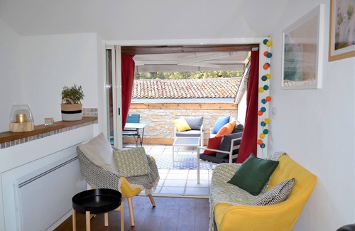 Renovated charming house in a typical South of France village. Enjoy the rooftop with a pizza you will order 2 minutes walk from the house. Rest in a quiet environment. Enjoy a nice movie from the bedroom.