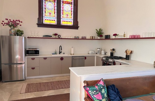 Welcome to your unforgettable escape to a restored 3-bedroom 1900s church were stained glass meets sass, and halos are optional. Each bedroom features a comfortable queen bed, ensuring a perfect night's sleep for all guests. With amenities like WiFi, a washing machine, and heating, your stay will be superb. The 2 bathrooms come equipped with a hair dryer and shower for added convenience. Experience the magic in our perfect space for saints, sinners and everyone in between. Confess nothing, just relax. Book your stay. Amen to that.