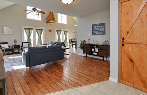 Located in the sought after Chesapeake Ranch Estates community, this property boasts beautiful secluded scenery with waterfront views. Nestled on a private pond in the backyard. This property has 360 degree scenic views and charm to match. The kitchen comes fully stocked with all the gadgets and comforts you could ask for including a Keurig with some kcups. Amenities include full deck / patio with electric grill overlooking the private pond and dock surrounded by wooded scenery. Multi-private community beach access, lake access, hiking trails, boat launch, camping grounds, canoe rental, horseshoe pits, gardens, private community airstrip(2-3 required car passes are provided for community ammenities-fishing/crabbing licensesrequired per maryland state laws(365 bay and coastal)), game room, movie theatre, tree hammock, fire pit all this plus so much more. Dogs under 50 lbs allowed and or service documented dogs. Please keep all dogs off furniture and beds. No other animals and or cats permitted. No parties allowed and or large events, no exceptions! Guest max is no more than 10 people. Bunk bed has max weight limit 180 on bottom and 150 on top. No other extra visitors allowed. Hot tub is seasonal when in operational status, check prior to booking. Community ammenities such as River beaches are subject to seasonal and HOA operations.