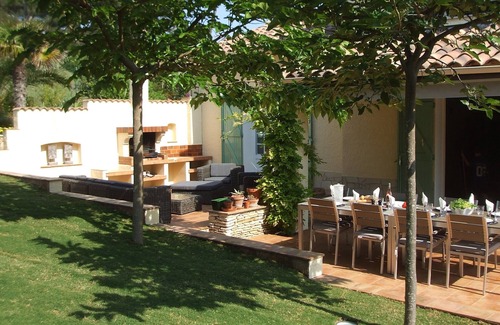 This traditional villa is only a stone's throw away from the sea, near both surveilled and wild beaches, has a heated pool, large terraces and secure garden with parking and garage.