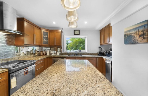 Opal Oasis is a 5BD/4BTH sanctuary suitable for up to 10 guests. This luxury home features Heated Pool, Spa, Gourmet Kitchen, Stone Floors, Expansive Living Area, In-Law Quarters and more. Located in excellent area of Miami just 1 block to Continental Park (tennis, basketball, etc.), 2 blocks to Whole Foods/Target and easy access to anywhere in Miami-Dade and the Florida Keys. Spacious, serene and the perfect home for your next Miami getaway!