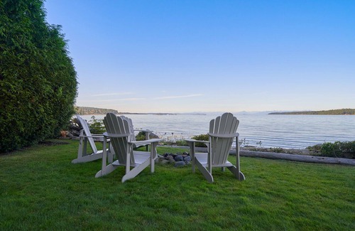 The beach house is situated on an ocean front point capturing spectacular views from every room and is just steps to the ocean. This recently renovated open design west coast home features air conditioning, hardwood and slate floors and stone fireplace. A well-equipped loop kitchen, down duvets, down pillows and Terry cloth robes and slippers. Enjoy the abundant sea life from the hot tub on your private patio or sit around the campfire in the evening at the waters edge. The home sleeps 6.