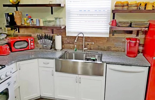 Enjoy a wide open floor plan filled with creature comforts, including a high-end Memory Foam King Bed, a plush Queen memory foam sleeper sofa, and an ultra-comfortable luxury Queen air mattress. The gourmet kitchen is equipped with a gas stove, microwave, fridge, washer/dryer, and all the small appliances you need to self-entertain.