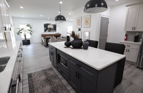From the signature accents to the curated decor, every detail is crafted to create a warm, modern atmosphere. The heart of the home is its open-concept living area that flows effortlessly into a fully stocked kitchen, perfect for home-cooked meals or group gatherings.