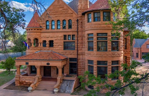 Beautiful Manitou red sandstone mansion, built in 1889 by famous architect William A Lang. Originally built by Colorados first Governor James B. Orman. This unique lodging experience is centrally located less than a mile from the Arkansas Riverwalk and historic downtown Pueblo. Enjoy a private stay in a prestigious home! The estate sits on an acre of land and is fully gated. Guests are welcome to explore the unique property, includes a formal dining room, great room, and endless sitting areas.