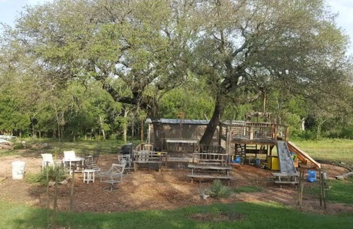 Get away from the city, enjoy tent camping, under the stars, in a safe environment. Shady sites in the trees with a fire ring and picnic table at the sites. Limited campers allowed, and camping sites are about 100ft apart. The lake is only 1.5mi away at Shaffer Bend Recreation Area where there are hiking trails and access for fishing, kayaking, swimming. This is an LCRA park area which charges a day fee. Camping is primitive without electricity. There is a camp bathhouse with hot water, shower and composting toilet. There is no driving in the campsite area, parking is nearby and a cart is available for hauling your stuff.