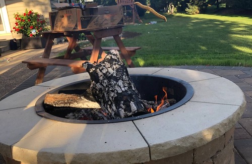 The house is at the end of a cul de sac in a quiet, safe, residential neighborhood. Lower level has a bar, fireplace, exercise room, sauna and additional living room. Large backyard with patio, grill, fire pit, swing set and outdoor seating.