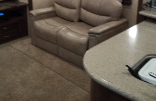 We have a 36 ft fifth wheel that we as a family absolutely love camping in! It has 3 slideouts that make for a huge living area and kitchen. The bathroom is accessible from the main bedroom privately or from the hallway. We love entertaining and getting to know people so whether you are enjoying the small treats we leave or the fire pit outside we know you will leave loving our cozy camper too!