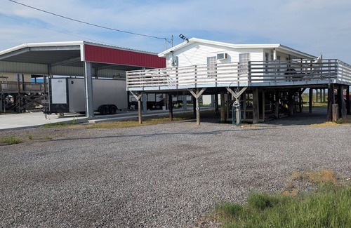 Newly remodeled camp with amazing views of the sunset over the water. Over 1,000 sq/ft of outdoor deck with whicker couch, chairs, loveseat, and a table. Large open floorpan great for entertaining with comfortable accommodations for the whole family. Nearly 2000 sq/ft of covered entertaining area under the camp with BBQ pit, fish cleaning station with sink, and property is built on two lots. Large gravel parking all around camp for a larger boat(s). Only a short walk away from the beach and 1/2 mile away from island night life / hot spots. We look forward to helping you make lasting memories at camp "Still Here.",