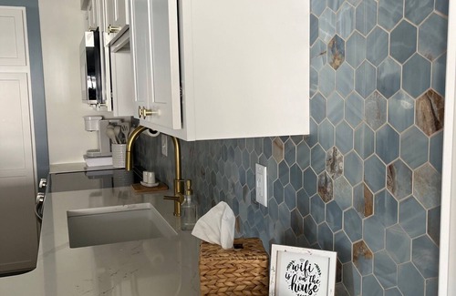 The kitchen has everything needed to create a lovely meal if you so desire, along with plenty of seating for dinners. The living area has ample comfortable seating and is beautifully decorated and boasts a 65 inch Roku tv for personal streaming. The kitchen, dining, and living area are all open to allow for family and friends to gather and enjoy!