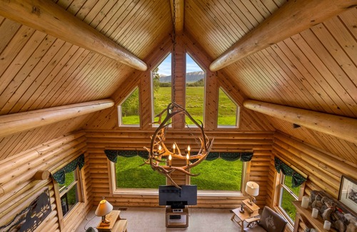Our ultimate luxury Montana log cabin. Special highlights include a vaulted ceiling, an expansive rock fireplace and spectacular views of the Madison Range. | House in Ennis