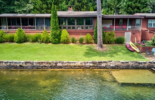 Outdoor adventure awaits you at this home located on the shores of Lake Rabun. Take in the lake views year round, with a cement dock to relax on, do a little fishing from, or tie your boat too. Take advantage of the provided kayaks and explore the waters firsthand. Spend an evening down by the shore at the firepit and roast some marshmallows. Cook out on the grill on the screened porch and gather around the huge dining table that seats everyone while overlooking the lake.