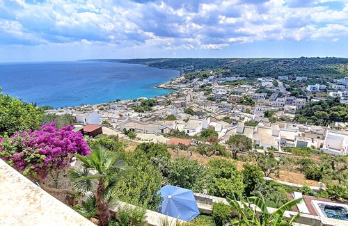A special house awaits you here in the historic center of the old fortress of Castro. It is located on a hillside on several levels and offers various terraces and a wonderfully relaxing garden with a heated outdoor jacuzzi and a fantastic view over the sea and the Adriatic coast of Salento.The house is simple inside but quite unique due to its early 20th century eclectic style. It has three bedrooms, two bathrooms, several living areas, a kitchen and two panoramic terraces. It is distributed over two floors, which are connected by an external staircase.The entrance of the house is on the upper floor and leads to the living area, which consists of two rooms, one of which has a kitchen (with oven, microwave and dishwasher) and a gallery with a double bed. There are also two double sofa beds in the living area; a shower room is next to the living room. The highlight is the large panoramic terrace, which is furnished with tables, chairs and sofas and offers a fantastic view over the different shades of blue of the sea, the sky and the rugged coast of Capo di Leuca.On the ground floor there are two more bedrooms: a double and a triple room (with bunk beds and a single bed); there is also another bathroom with shower and a second outdoor terrace from which you can access the lush garden. This is equipped with a pavilion, a swing, a table, chairs and a heated outdoor whirlpool (max water temperature 25-35 °C depending on the season); the latter is open all year round on request, at an additional cost of €80 for the setup €20 per day. The surcharge includes all water costs as well as cleaning by a service provider approximately twice a week and with every guest change.The whole house, the garden and the mini pool are exclusively available to you and are not shared with other people.In the photo gallery you will find a floor plan of the house.At the lower end of the garden, a small pedestrian gate leads you onto a footpath towards Castro Marina and the sea (approx. 10 minutes). The pretty piazza of Castro just around the corner, several cafes, restaurants, pizzerias and two supermarkets are also within walking distance. The coast of the region is rocky with numerous very impressive bays. The nearest sandy beaches are the beautiful Porto Miggiano (approx. 5km) and Porto Badisco (approx. 14km) as well as the kilometer-long sandy coast of Alimini north of Otranto.Please note that the house has no private parking spaces and that the entrance to the house is in a restricted-traffic area of the old town. You can park just outside the city walls (there is paid and free parking) and walk the last stretch (approx. 100 meters). Sheets, duvets and towels are not included. If you don't want to bring them with you from home, regardless of the length of your stay, you can rent them for €24 per person. Final cleaning is not included and costs €120, unless you clean yourselves before departure. Pets are NOT allowed in this property. We will ask you to pay a security deposit of €600 before arrival. The security deposit will be refunded within 7 days after departure, if there is no damage. Electricity costs (and thus where applicable AC, hot water, heating etc.) are NOT included in the price and will be charged based on your actual consumption. The price per kWh charged to guests was €0,42 on 14/03/2025, when this text was last updated, but as prices are fluctuating a lot, your actual price per kWh will be communicated a few days before your arrival based on the current market price.We decided not to include electricity costs in the rent in order to: a) keep our rental prices stable despite inflation and b) incentivate our guests to use electricity responsibly, helping us to reach our sustainability goals. Thank you for your understanding. ABOUT USWe're a team of holiday enthusiasts with diverse backgrounds based between Italy and Switzerland. 🇨🇭Our mission is to find the most unique holiday homes, refurbish them and make them available to people like you, who want to live the authentic Italian experience at a high (Swiss!) quality, without spending a fortune By booking this accommodation, you accept that:- We are obliged by law to verify the identity of all our guests. We will therefore ask you to upload copies of your IDs on our (secure) website to verify your identity before handing out the key code for the accommodation. Your personal data is treated in full compliance with EU data protection laws.- Also, we are obliged to sign a rental agreement with our guests (one person per group). This will be done digitally and requires just a few seconds on your side. You can find a template of the rental agreement on our website.- Parties, gatherings, events or loud music are not allowed at this property unless explicitly authorised beforehand by us in writing.- In case the local municipality charges a tourist tax, we will ask you to pay this separately to us and we will transfer it to the local authorities as required by law.